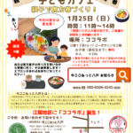 今ここねっと八戸の子ども食堂は、毎月カレーライスのバリエーションをお届けしていますが、2月は少しだけひねりを加えて、デミグラスソースハンバーグプレートをお届けします!いつもの様にお帰りにはお土産も!日程は以下の通りとなり […] - 1月の子どもカフェは「親子で恵方巻づくり!」